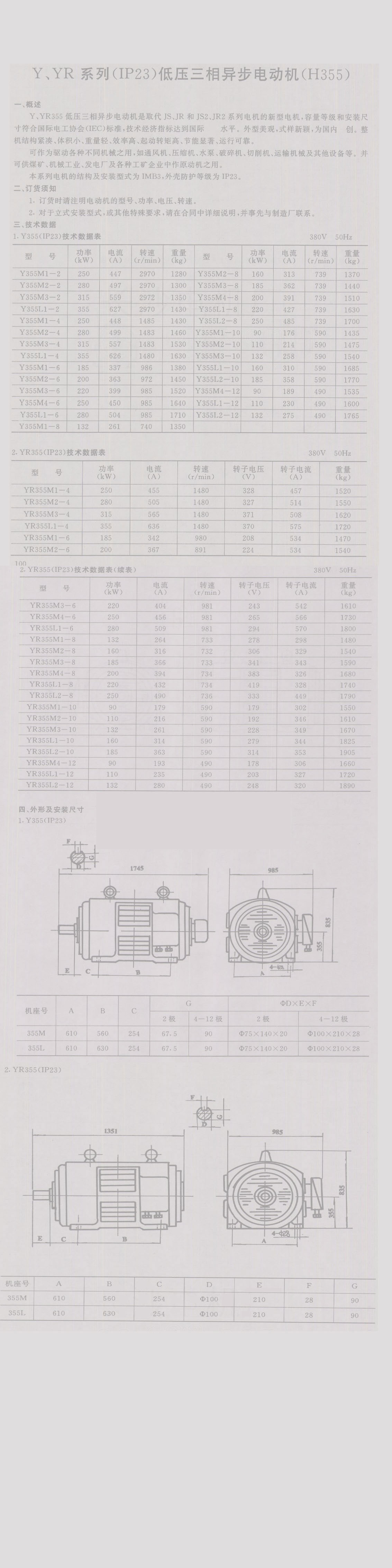 Y、YR系列(IP23)低壓三相異步電動機(H355)